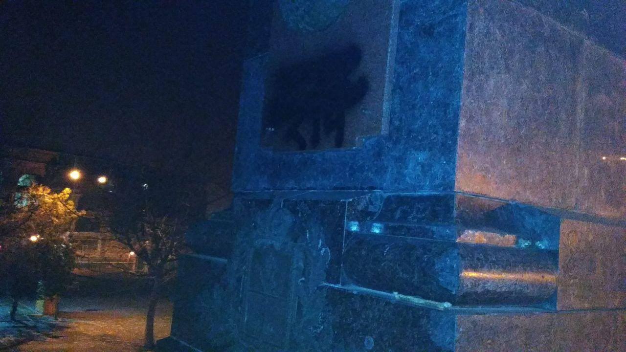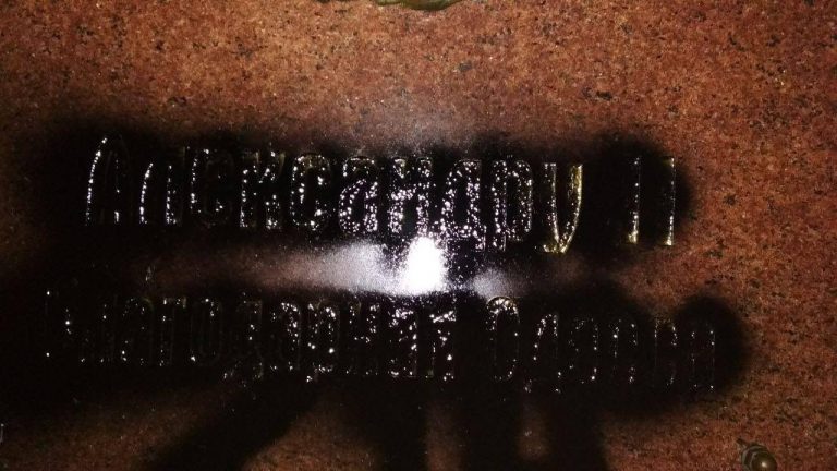 Националисты залили краской памятную табличку и пригрозили, что на очереди — памятник императрице Екатерине II.