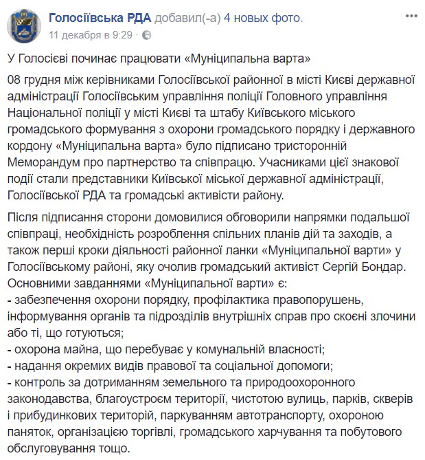 Несмотря на такой бэкграунд, руководство Голосеевского района выбрало в качестве руководителя "Муниципальной варты" Бондаря.