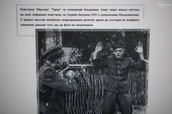 В экспозиции представлены фото боевиков УПА, а также фото украинских солдат в зоне "АТО".