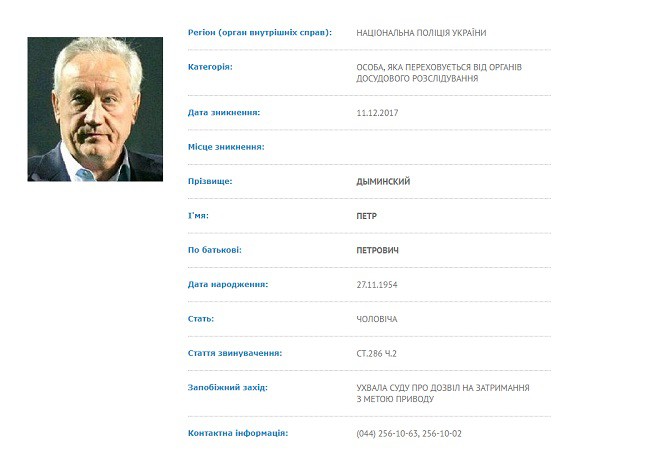 Олигарх и президент футбольного клуба «Карпаты» Петр Дыминский был объявлен в розыск органами внутренних дел. В пятницу, 15 декабря, его профиль появился в базе лиц, разыскиваемых МВД.