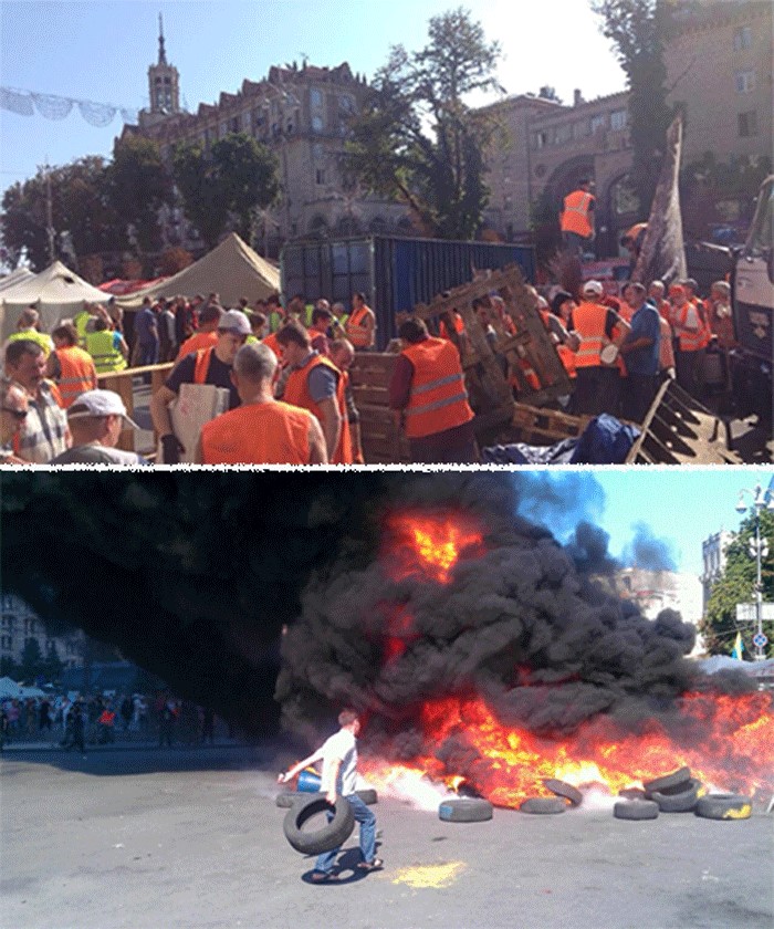 Выгнав - поют щэнэвмэрлу и орут сало уронили. Я не шучу! А на самом майдане продолжается церемония курения шин.