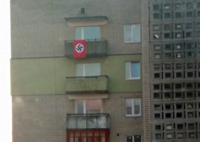 "Фашистов на Украине нет": В Нововолынске на балконе "патриот" вывесил флаг со свастикой