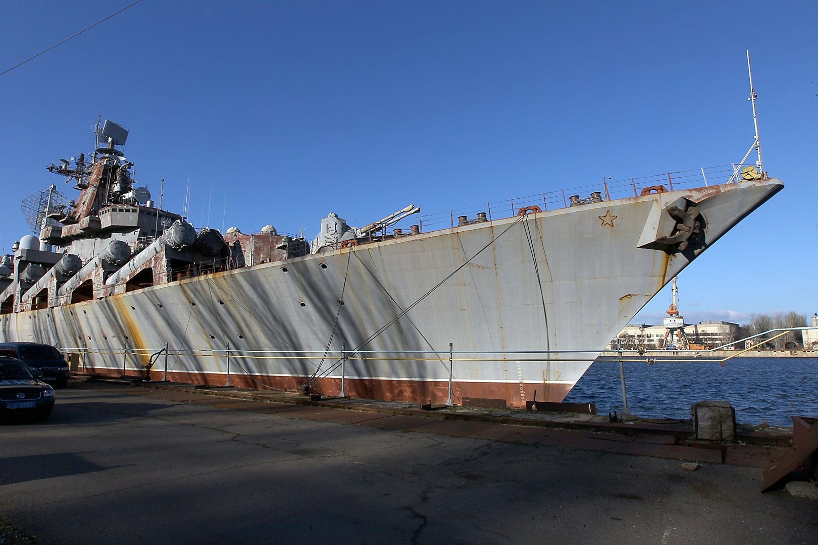 «Украина» — это единственный ракетный крейсер (советский проект 1164 «Атлант»), который достался украинской стороне после раздела Черноморского флота в 1997 году. Корабль был спущен на воду в 1990 году, но уже почти 30 лет остаётся в недостроенном состоянии. В местных СМИ его называют призраком.