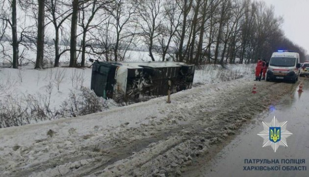 Под Харьковом ветер перевернул рейсовый автобус с пассажирами