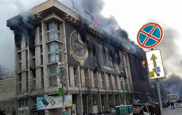 Правое крыло Дома профсоюзов догорает. Пострадала и высотная часть здания. Пожарники мах-нули рукой на пожар после того, как спасли всех отсеченных огнем с верхних этажей. Никакого Беркута в здании так и не нашли. Хотя ночью утверждали, что они залезли через окна второго этажа и бросали с крыши "зажигалки". На самом деле никто их так и не нашел, а здание подожгли сами боевики. То ли в результате многочисленных попаданий фейерверков, то ли бандитами сознательно - по принципу "так не достанься же ты никому". Это похоже на правду, потому что майданные не давали проехать пожарным до тех пор, пока с верхних этажей не начали орать и звать на помощь.