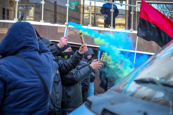 Около 30 скаклов сегодня, 26 февраля, в Одессе пикетировали консульство Российской Федерации. Об этом сообщает Думская.