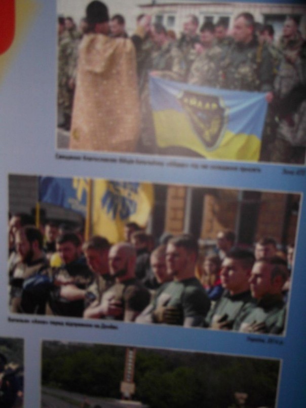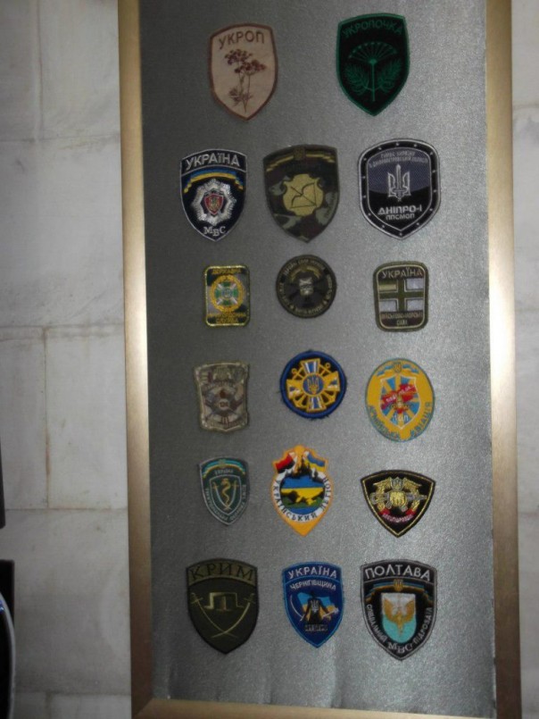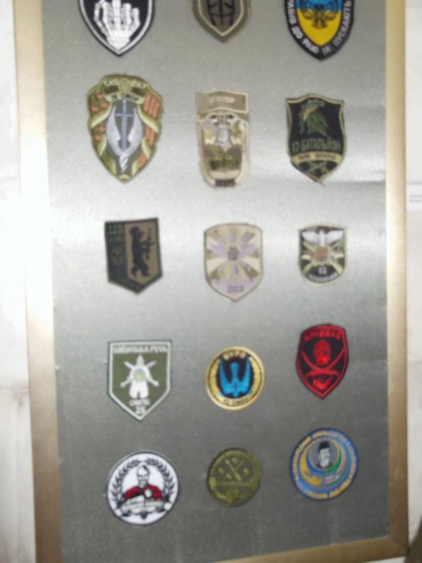 Цель выставки также — почтить память погибших бойцов батальона «Донбасс» Национальной гвардии — Эдуарда Ушакова, Кадыра Магомедова и еще десятков героев-земляков из разных подразделений, участвовавших в АТО». Сейчас этого в зале нет, но хватает плакатов с «доказательствами российской агрессии».