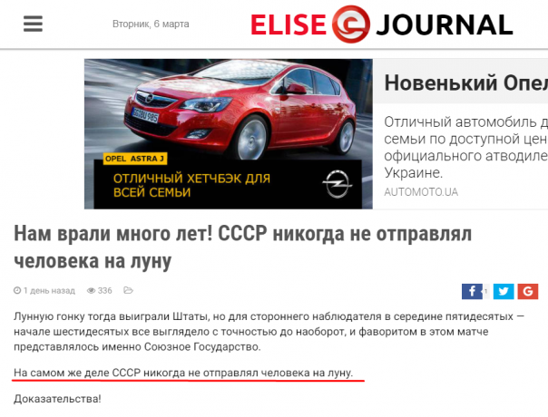 Насколько все таки уровень образования низок на Украине, если представители прессы, даже не знают, что на Луну СССР никогда не отправлял человека.