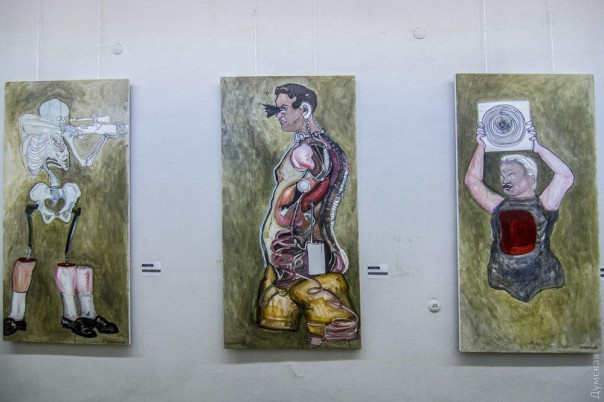 … Выставка киевской художницы Рады Ралко носит, я бы сказал, очень скромное название «Анатомия». Скромное потому, что к слову «анатомия» так и хочется добавить напрашивающееся определение «патологическая». Вы только посмотрите на эти «шедевры» – что называется, море крови и куча костей! Безобразные ошметки людских тел, залитые потоками красной жидкости… омерзительные подобия женских фигур, всенепременно изувеченные с неистовством маньяка… И все это, прошу заметить, намалевано нарочито небрежно и по-школярски беспомощно. Нет, я не претендую на лавры гройсе-искусствоведов или арт-критиков, поелику ни Джорджо Вазари, ни Игорь Грабарь просто не стали бы писать об этой кровавой и уродливой мазне.. Но вот мое высшее медицинское образование и некоторые познания в патопсихологии позволяют высказать свое мнение об этих, с позволения сказать, «артобъектах».