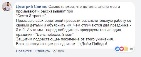 Украина наверное заслужила свой "праздник". Всех же остальных людей поздравляю с наступающим праздником 9 мая! Источник