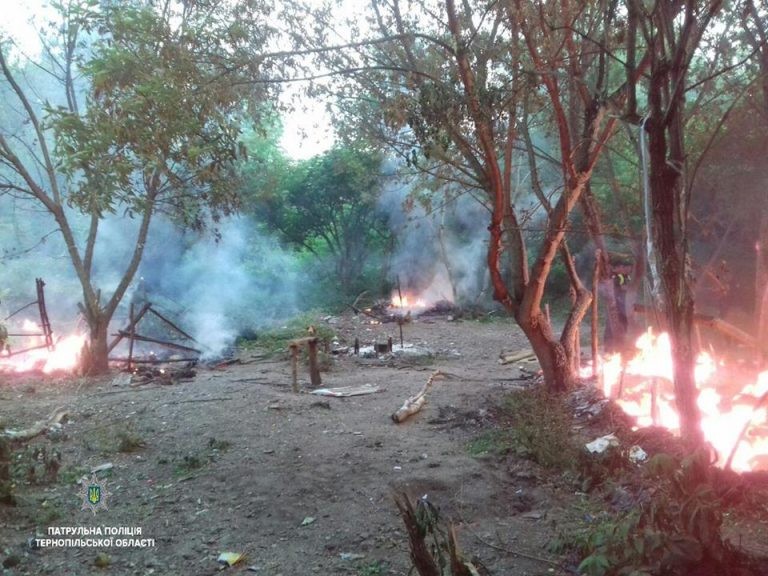 В Тернопольской области толпа молодчиков с битами напала на цыганский табор и сожгла его
