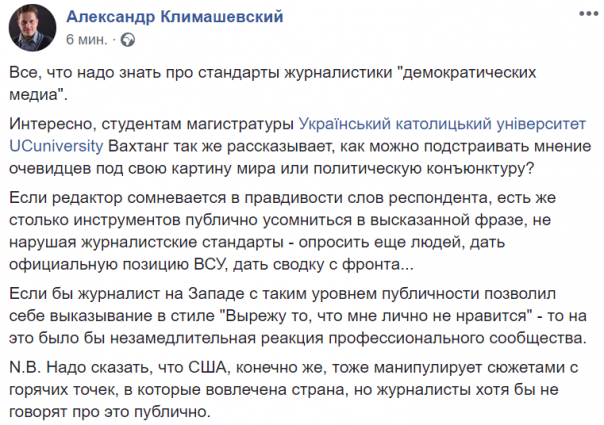 Интересно, студентам магистратуры Украинского католического университета Вахтанг так же рассказывает, как можно подстраивать мнение очевидцев под свою картину мира или политическую конъюнктуру?