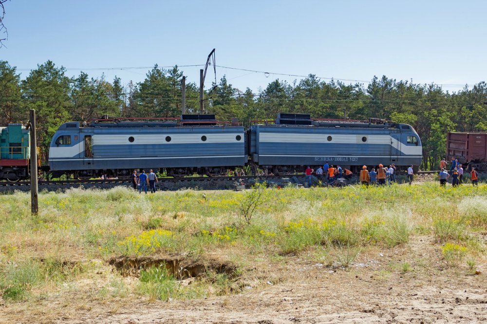 Сход под Днепропетровском. Линия магистральная и электрифицированная. 19 июня 2018 года. Причина очень красноречивая - расхищение верхнего строения пути. Произошло около станции Нижнеднепровск.