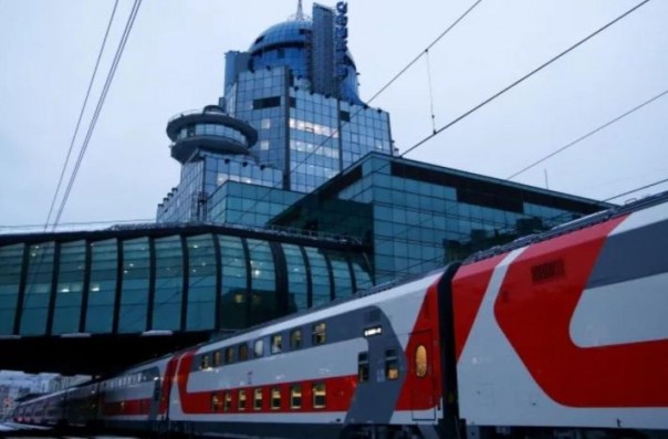 Двухэтажный Самара-Москва на фоне самарского вокзала Источник