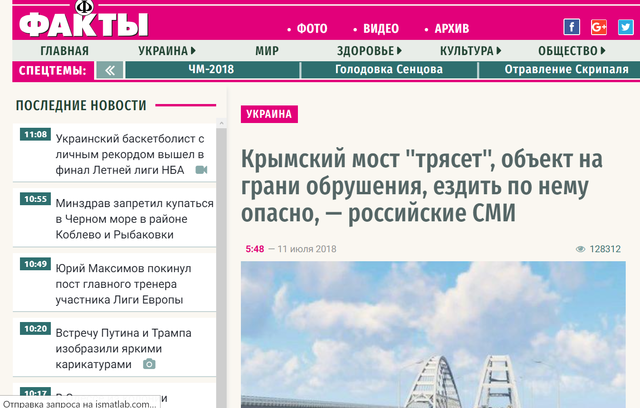 Когда Россия только объявила о желании построить мост, можно было язвить и сомневаться. Опять же можно было выдумывать все что угодно и во время строительства. Все равно никто ничего не проверит. Но какой смысл писать эту ахинею, когда по Крымскому мосту проехал миллионный автомобиль? Реально не пойму. Неужели кому-то очень хочется выглядеть идиотами?