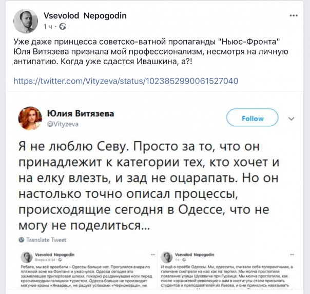 При всей моей к нему нелюбви и массе разногласий, которые сделали нас в мою бытность пользования фейсбуком едва ли не врагами, сегодня он озвучил то, в чем страшно признаться многим одесситам.
