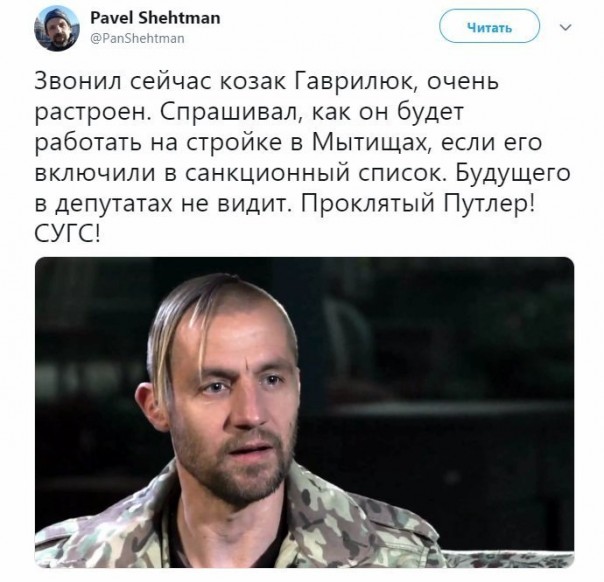 Нация со смехом и шутками восприняла введение так называемых «санкций» со стороны «ржавой бензоколонки». «О, яипу, Гаврилюк не сможет работать на стройках народного хозяйства РФ после завершения депутатских полномочий!», «Да наш козак все свои сбережения держит в Дюбаях!», «А вместо лидера С14 какого-то галериста обложили, тупые мордоровцы», «Черновецкого-то за что? Он только недавно из больницы вышел». «Отцы» европейской Украины тоже изощрялись в остроумии.