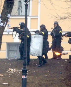 Западные и некоторые украинские СМИ, страдающие лояльностью к радикалам-экстремистам, растаскивающим Украину на куски, нашли новую информационную «фишку» - демонстрировать «мировому сообществу» кадры того, как сотрудники правоохранительных органов применяют против «мирных демонстрантов» огнестрельное оружие. Этими кадрами упомянутые СМИ не только собираются повысить градус ненависти со стороны бандитских групп к правоохранителям, но и показать «всему прогрессивном миру» то, как «кровавый режим Януковича» расправляется с «борцами за свободу». И «мировое сообщество», видя такие кадры, приходит в настоящее «демократическое» негодование: мол, ишь, чего эти изверги-беркутовцы творят в Киеве, мол, нужно срочно «демократически» помочь собственными поставками оружия для «борцов с режимом». И российские впечатлительные гиперлибералы в силу известных проблем с матчастью и расплодившимися тараканами в головах костерят на чём свет стоит украинскую милицию, призывая мировое сообщество «дать кулаком по зубам» украинской власти – в отместку за «беспредел Беркута».