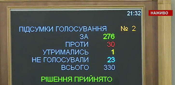 Верховная Рада 276 голосами утвердила введение военного положения.