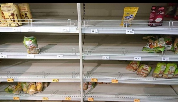 Как сообщает сообщество “Kiev Live”, тем временем, в украинской столице, как и в самые жаркие дни Евромайдана, население начало сметать с полок магазинов товары первой необходимости – в подтверждение приводится снимок из супермаркета “Экомаркет” на массиве Оболонь. Источник