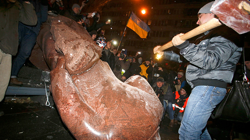 Пять лет назад в разгар «евромайдана» украинские радикалы снесли памятник Ленину в Киеве. Монумент на бульваре Тараса Шевченко скинули с постамента и разбили кувалдами. Это положило начало процессу, который националисты именуют «ленинопадом», — по всей стране стартовал снос памятников «вождю русской революции» и другим государственным деятелям советского периода. Правовое обоснование варварской «декоммунизации» Верховная рада дала в 2015 году. Повсеместный демонтаж связанных с СССР монументов эксперты называют политической технологией по символической демонстрации силы и уничтожению исторической памяти.