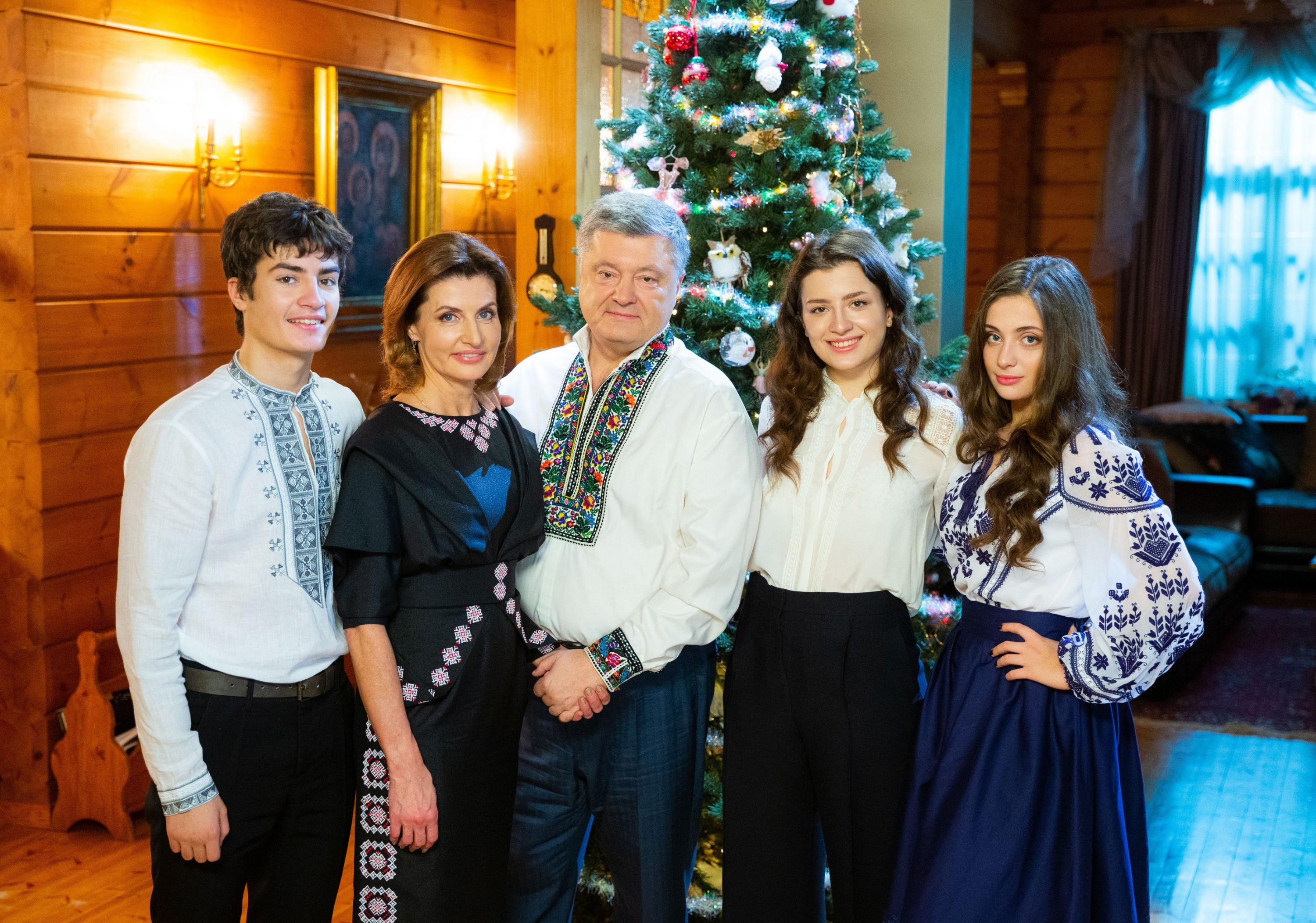 На снимке украинский лидер, его жена Марина и дети Михаил и Евгения одеты в вышиванки. Кроме того, Порошенко выложил видеообращение, на котором члены его семьи играют на фортепьяно и поют.