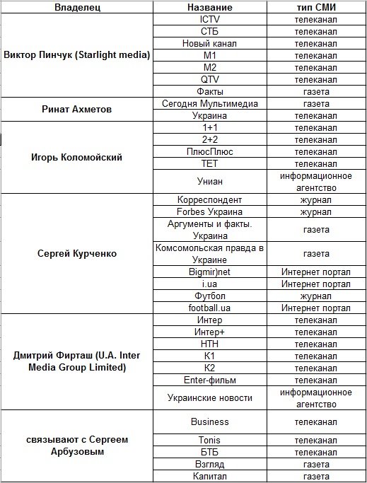 Все средства массовой информации принадлежат различным олигархическим кланам.