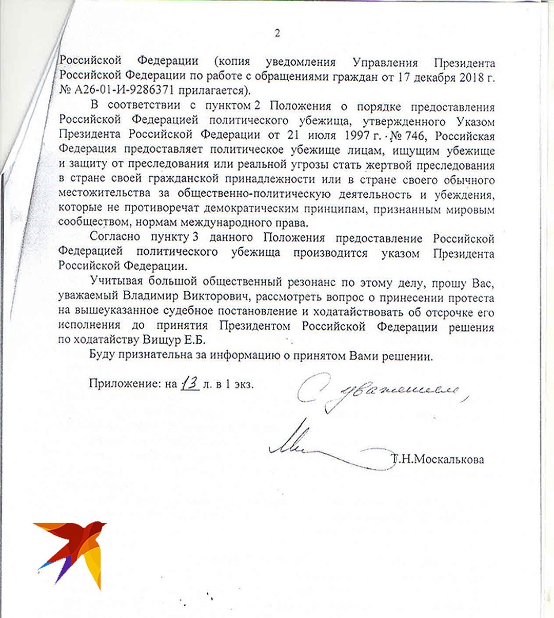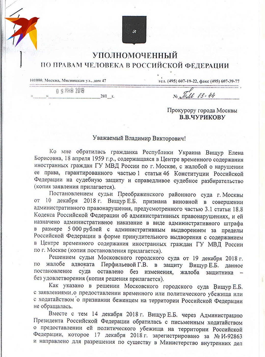 Но адвокат журналистки, узнав о заведенном на Украине деле, уже 14 декабря подала прошение на политическое убежище. А 17 декабря - Елена Бойко попросила временное убежище. В редакции есть документы, в которых уполномоченный по правам человека Татьяна Москалькова просит прокурора Москвы Владимира Чурикова наложить протест на решение о выдворении журналистки и отсрочить его исполнение до принятия решения по убежищу. В письме главе МВД Владимиру Колокольцеву Москалькова уже просит рассмотреть вопрос политического убежища. Но судья решила не дожидаться решения, которое вообще-то выносит президент — своим указом.