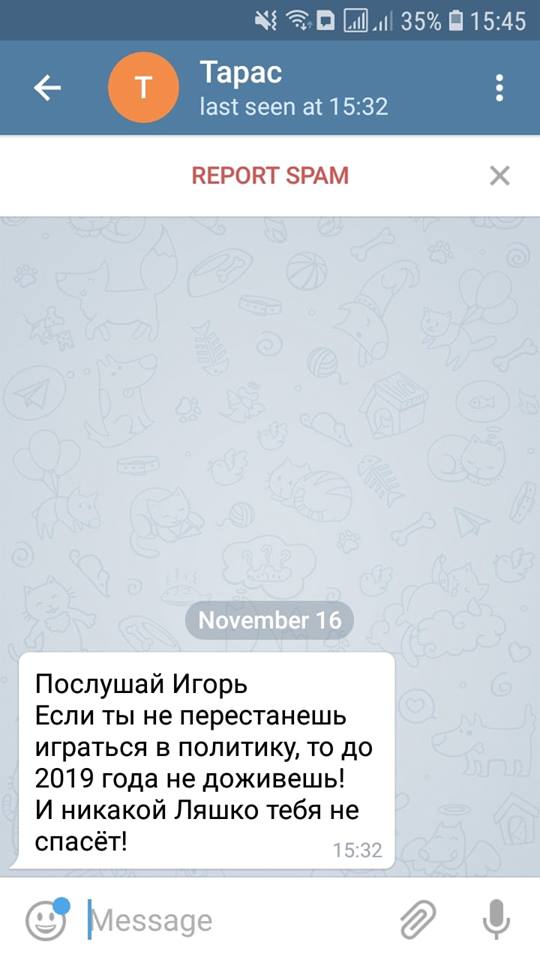 Криворучко утверждает, что после этого «активисты» стали получать смс-сообщения с угрозами. Источник