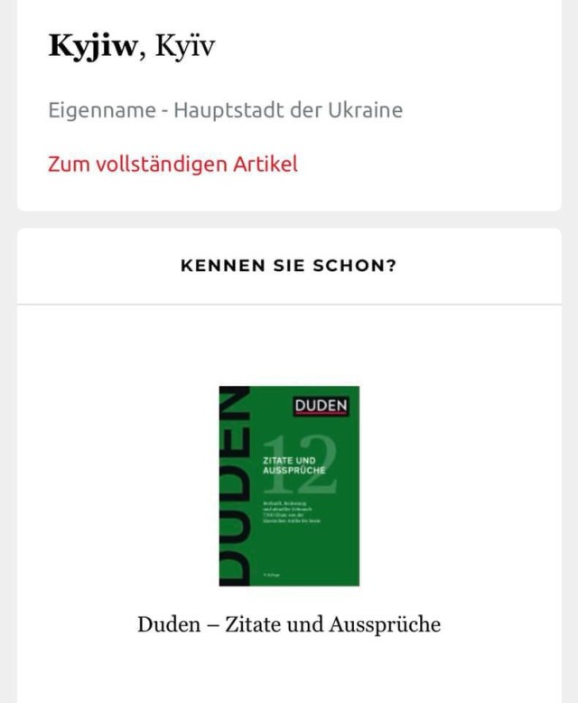 Главный украинский дипломат похвастался очередным свершением: самый авторитетный справочник по правописанию немецкого языка Duden изменил название украинской столицы с Kiew на Kyjiw. Только в Германии такое нововведение вряд ли приживется, ведь согласно нормам произношения немецкого языка, украинскую столицу теперь следует именовать не Киев, а Кюйив.