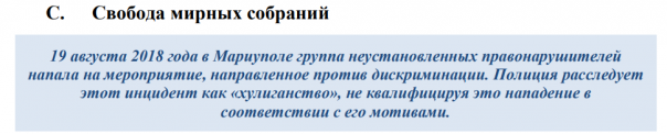 В документе говорится, что в период с января 2018 года по январь 2019 года на Украине сложилась тенденция "жестоких нападений и актов запугивания" в отношении журналистов и гражданских активистов.