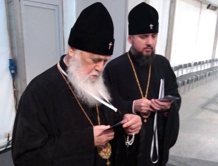 Смиренно явившись на собор в повседневной монашеской скуфьи (в патриаршем клобуке его бы не допустили бы в президиум фанариоты), он заявил, что не распустит свой «патриархат» (а это было условием начала «собора»), пока Зинкэвыч письменно не напишет заявление о самоотводе. Порошенко три часа уламывал последнего сняться. Только после этого «Филарэт» позволил «собору» начаться.