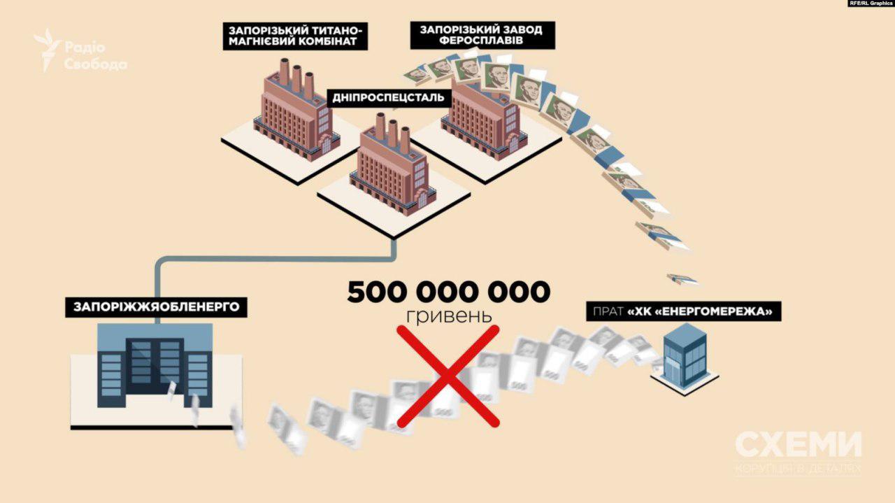 Суть схемы состояла в том, что АО «Запорожьеоблэнерго», «Черкассыоблэнерго» и «Харьковоблэнерго» дали добро на то, чтобы крупные местные промышленные предприятия оплачивали уже поставленное электричество не напрямую этим облэнерго, а «Энергосетям», где на тот момент председательствовал Крючков.