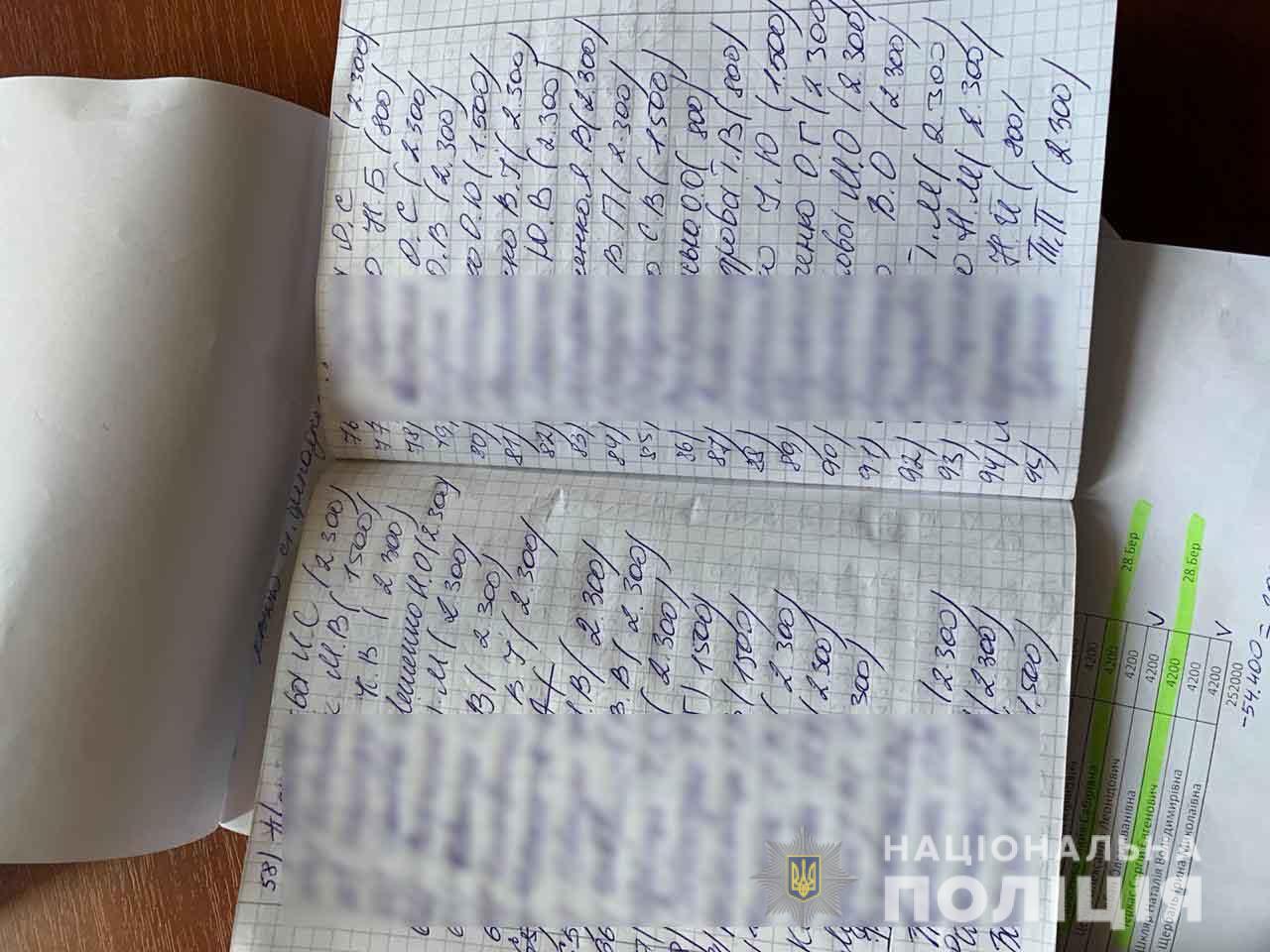 По приезду на место события следственно-оперативной группы и предметного обзора сотрудники полиции выявили крупные суммы денежных средств, большей частью номиналом по 500 грн, а также документацию с персональными данными граждан, в частности, списки граждан, напротив фамилии которых значились суммы денежных средств в эквиваленте от 2 до 4,5 тыс грн.