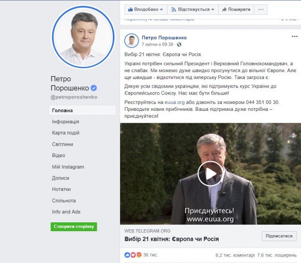 Видео было опубликовано на Telegram-канале “Европейское будущее Украины”. Отметим, что ссылка на сайт, который ведет к вышеуказанному Telegram-каналу, была размещена на официальной странице действующего Президента Украины Петра Порошенко в Facebook. Источник