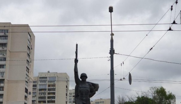 В Харькове молния срезала украинский флаг с памятника Советскому Воину-Освободителю