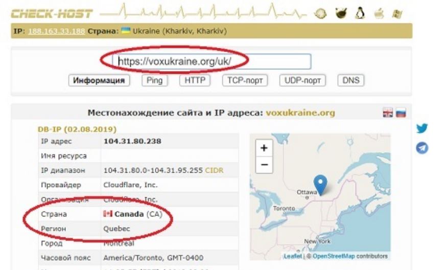 Сегодня IP-адреса сайта VoxUkraine расположены в Канаде и США.