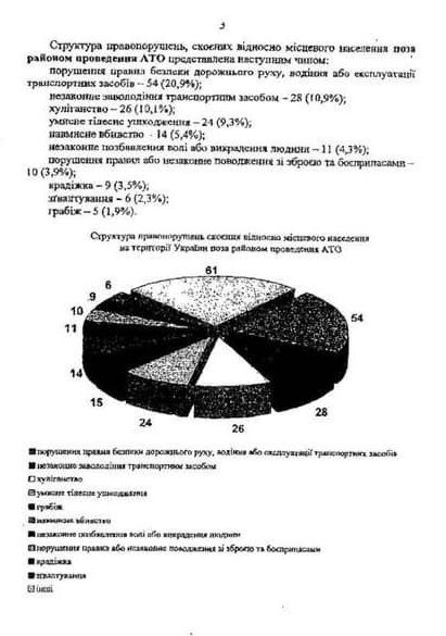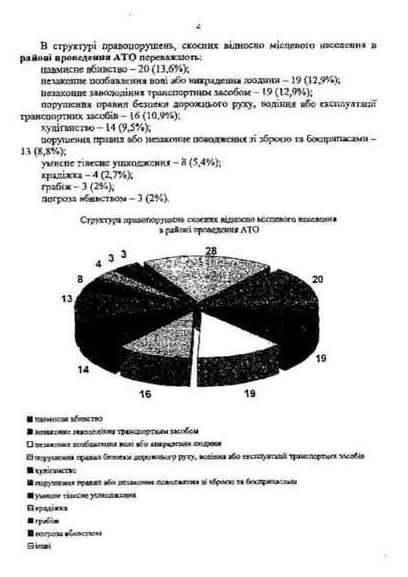 В структуре правонарушений, совершенных в отношении местного населения в районе проведения АТО преобладают:
