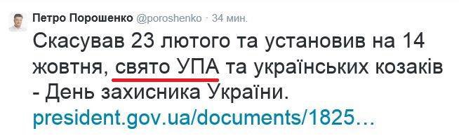 Порошенко отменил День защитника Отечества и установил фальшивый день УПА.