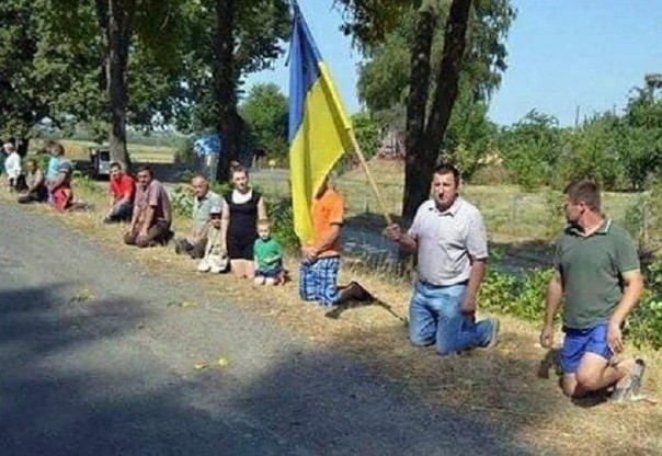 На самом деле, к уважению эта поза ни в коей мере не относится – во все времена это было сигналом унижения, рабства и покорности. Эта традиция получила распространение в основном на Западной Украине. Так там стало принято встречать тела погибших на Донбассе местных жителей, доставляемых для погребения на родину. Такие случаи многочисленны и хорошо известны. Особенно дико для цивилизованного человека видеть, когда в грязь, на колени, заставляют становиться детей.