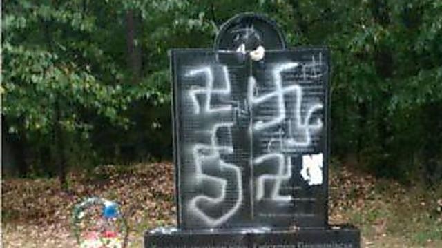 На гранитных плитах памятника были намалеваны многочисленные свастики, а также оскорбительные высказывания в адрес евреев.