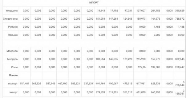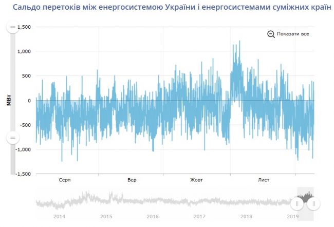 По данным «Укрэнерго», в октябре и ноябре прямые поставки электроэнергии из России составили 260 мВт-ч. Сопредседатель украинского Фонда энергетических стратегий Дмитрий Марунич отмечает, что в российский импорт необходимо включать частично и поставки электроэнергии из Белоруссии, чья АЭС еще строится, а ТЭЦ не в состоянии обеспечивать такие объемы экспорта — на Украину и в Литву. За пять месяцев через Белоруссию поступило 802 мВт-ч. В результате электроэнергия из России и Белоруссии обеспечила половину всего 11-месячного импорта Украины. По данным «Укрэнерго», он составил 2199 мВт-ч.