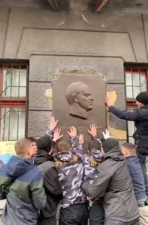До того, как вы уже знаете, были уничтожены и бюст героя на проспекте, носившем его имя (ныне – «Небесной сотни»), и еще несколько памятных знаках на домах, где он жил и служил Отечеству.