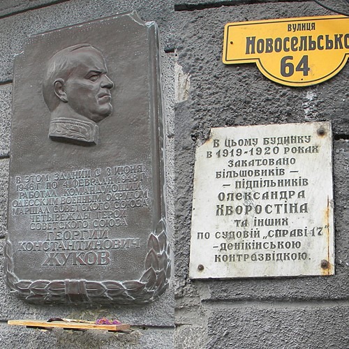 Нынешним утром шобла «активистов» содрала со стены старинного здания на улице Новосельского, 64 ПОСЛЕДНИЙ знак благодарности Одессы великому полководцу. Мемориальную доску с его барельефом, установленную в память того, что здесь после войны находился штаб округа, возглавляемого тогда Жуковым.