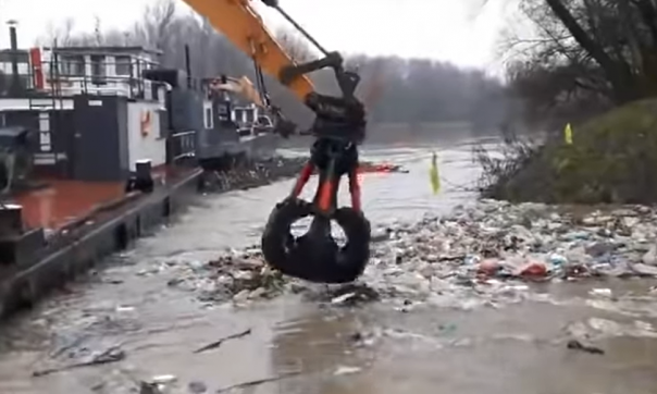 «Персонал FETIVIZIG очищает Тису в конце старого понтонного моста в городе Вашарошнамень. За полтора дня из реки были изъяты сотни кубометров пластиковых отходов», – комментируют в компании, которая предоставляет спецтехнику.