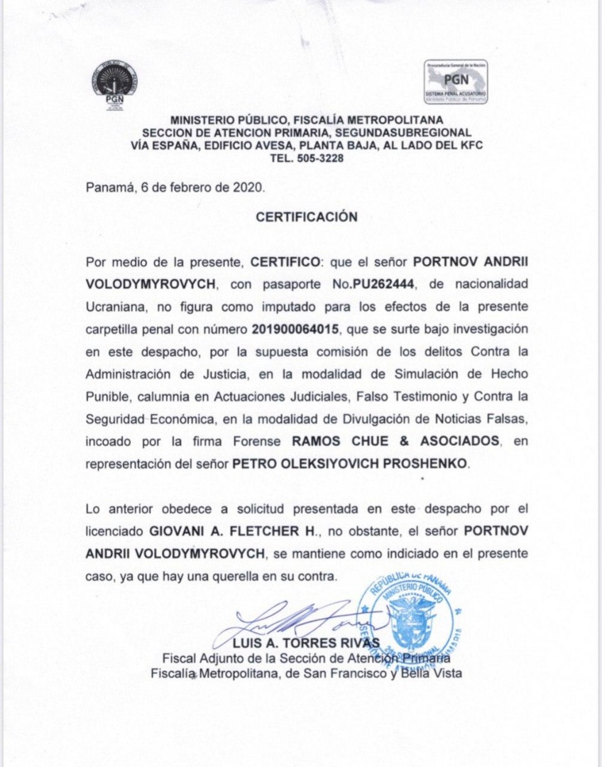 Для Вас, офшорного вора, мародёра и казнокрада и финансируемых Вами СМИ публикую январский и февральский 2020 года ответы прокуратуры Панамы. Для тупых тут написано, что Портнов ни в чем и нигде не обвиняется. Поймаю, натыкаю в оба ответа тупой воровской мордой», - написал Андрей Портнов.
