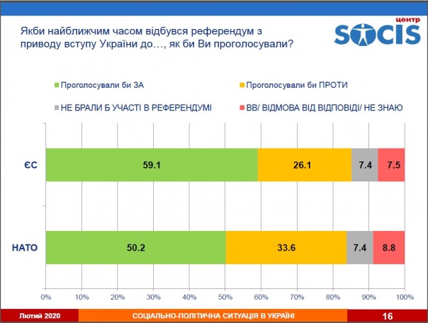 ЗА – 49,8% (Разумков), 50,2% (СОЦИС).