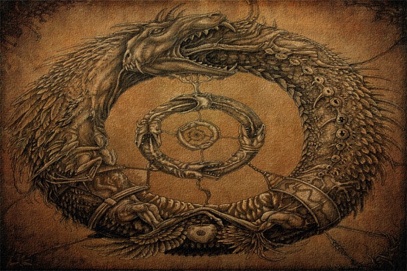 По большому счету, мы имеем классическую демонстрацию цикличности природы жизни, созидания и разрушения, в образе Уробороса.