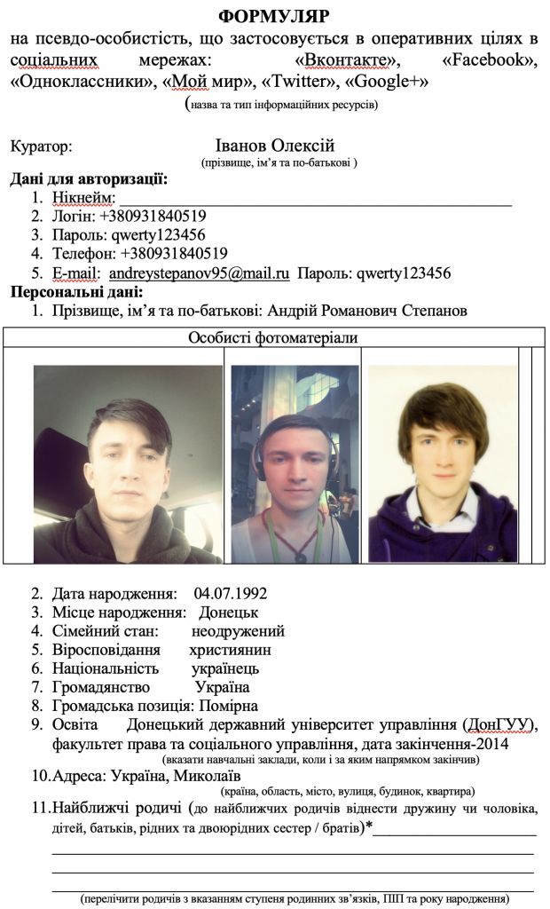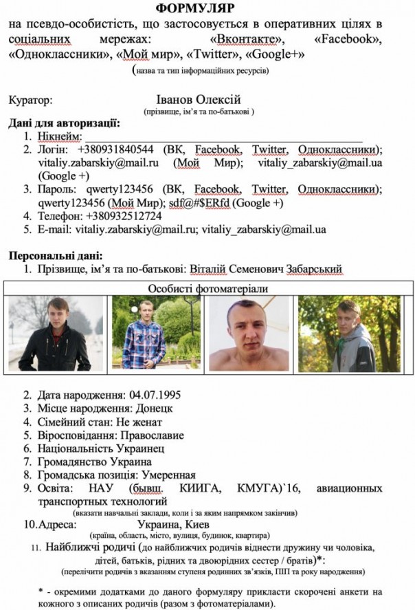Итак, поехали — псевдоличности от Сил специальных операций Украины для использования в «Вконтакте», «Facebook», «Одноклассники», «Мой мир», «Twitter», «Google+».