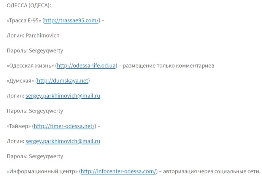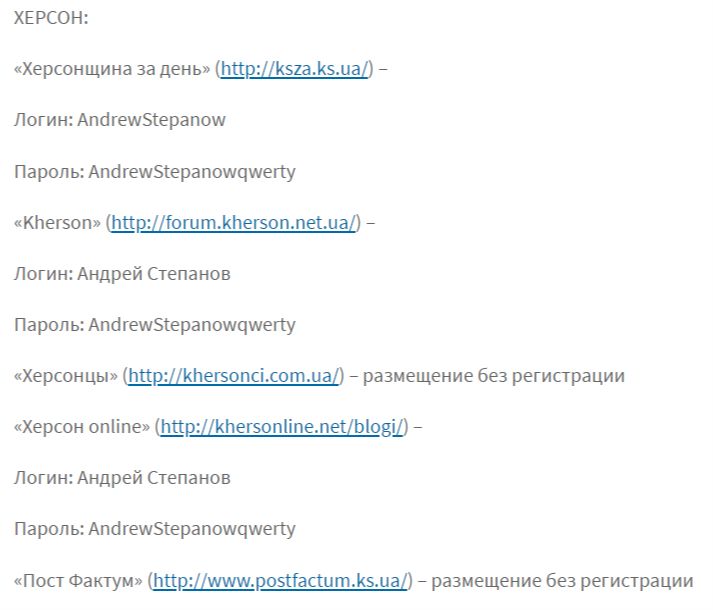 «Возможность размещения информации от имени псевдоособи на следующих региональных интернет-ресурсах: